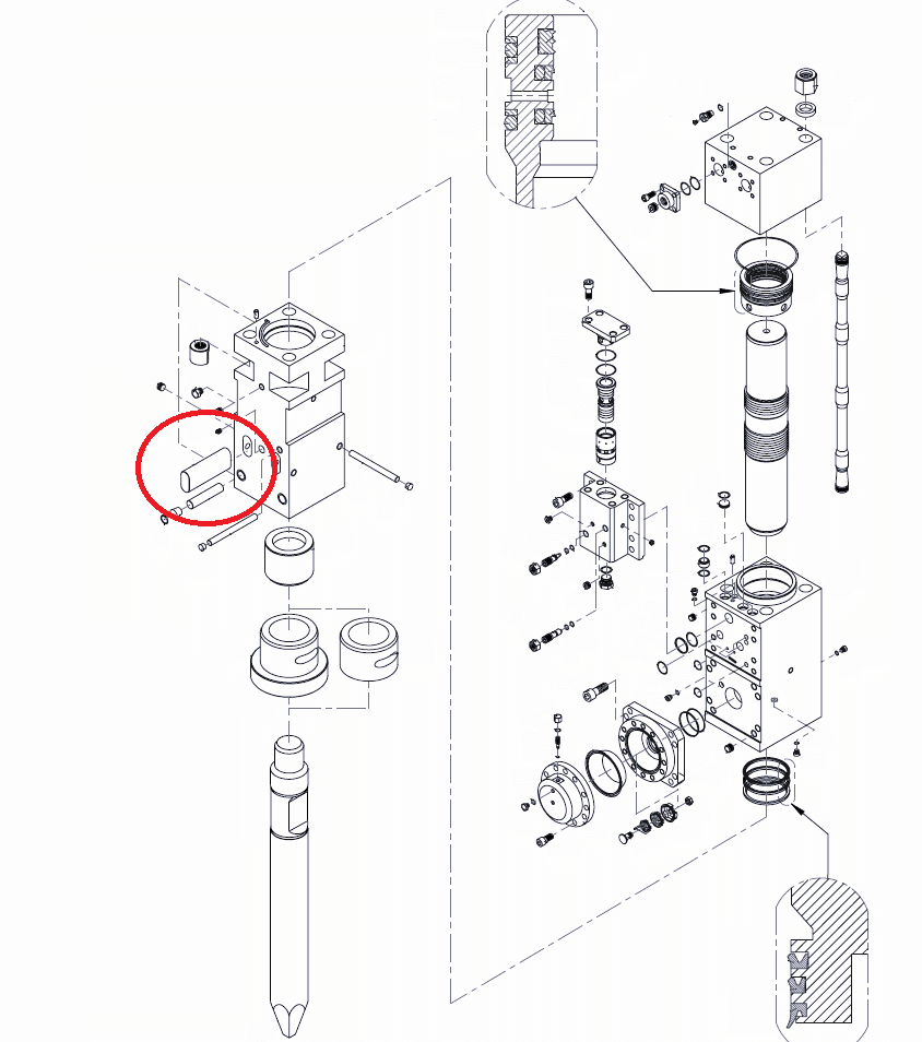 Rygiel grota do młota hydraulicznego/wyburzeniowego Dehaco DBH220.