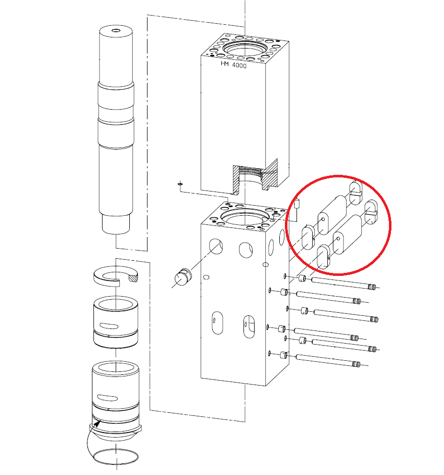 Rygiel grota do młota hydraulicznego/wyburzeniowego Krupp HM4000.