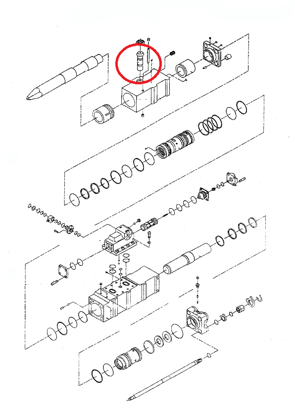 Rygiel grota do młota hydraulicznego/wyburzeniowego NPK E-210A.