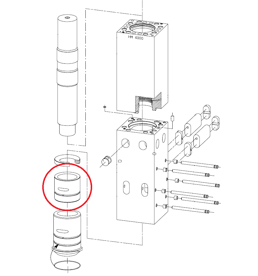 Tuleja górna do młota hydraulicznego/wyburzeniowego Krupp HM4000.